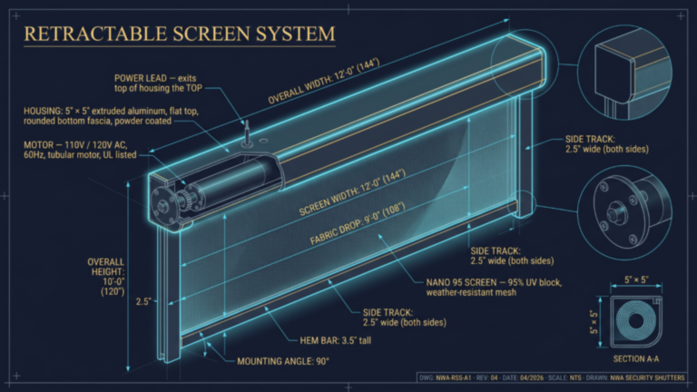 Whether you need a full porch enclosure in Fayetteville, a single patio opening in Bentonville, a garage screen in Rogers, or a solar shade for a commercial space in Springdale, NWA Security Shutters custom-fits every screen to your exact opening, fabric preference, and automation needs β so you get the right solution for your space, not a one-size-fits-all product.